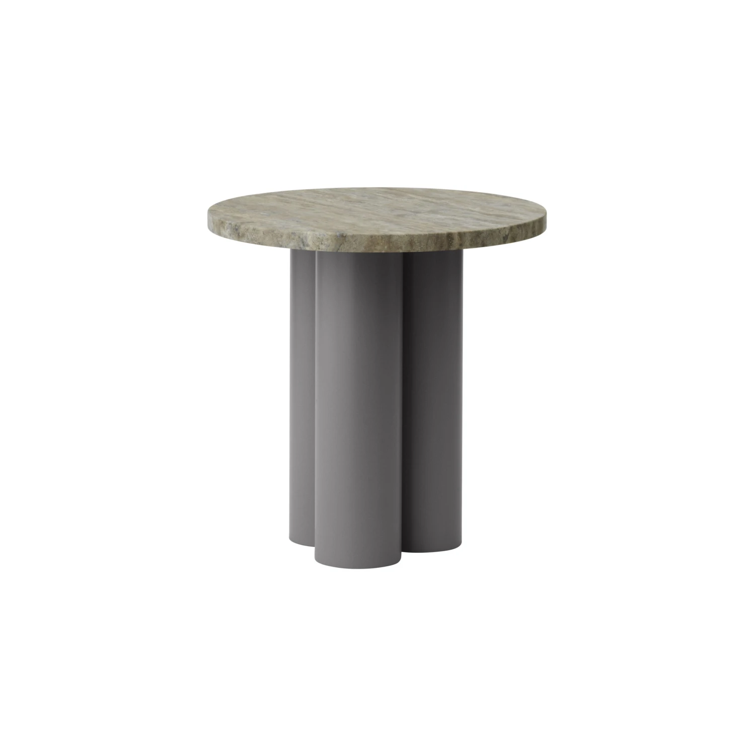 Material : Tischplatte: Travertin – Fuß: Stahl pulverbeschichtet