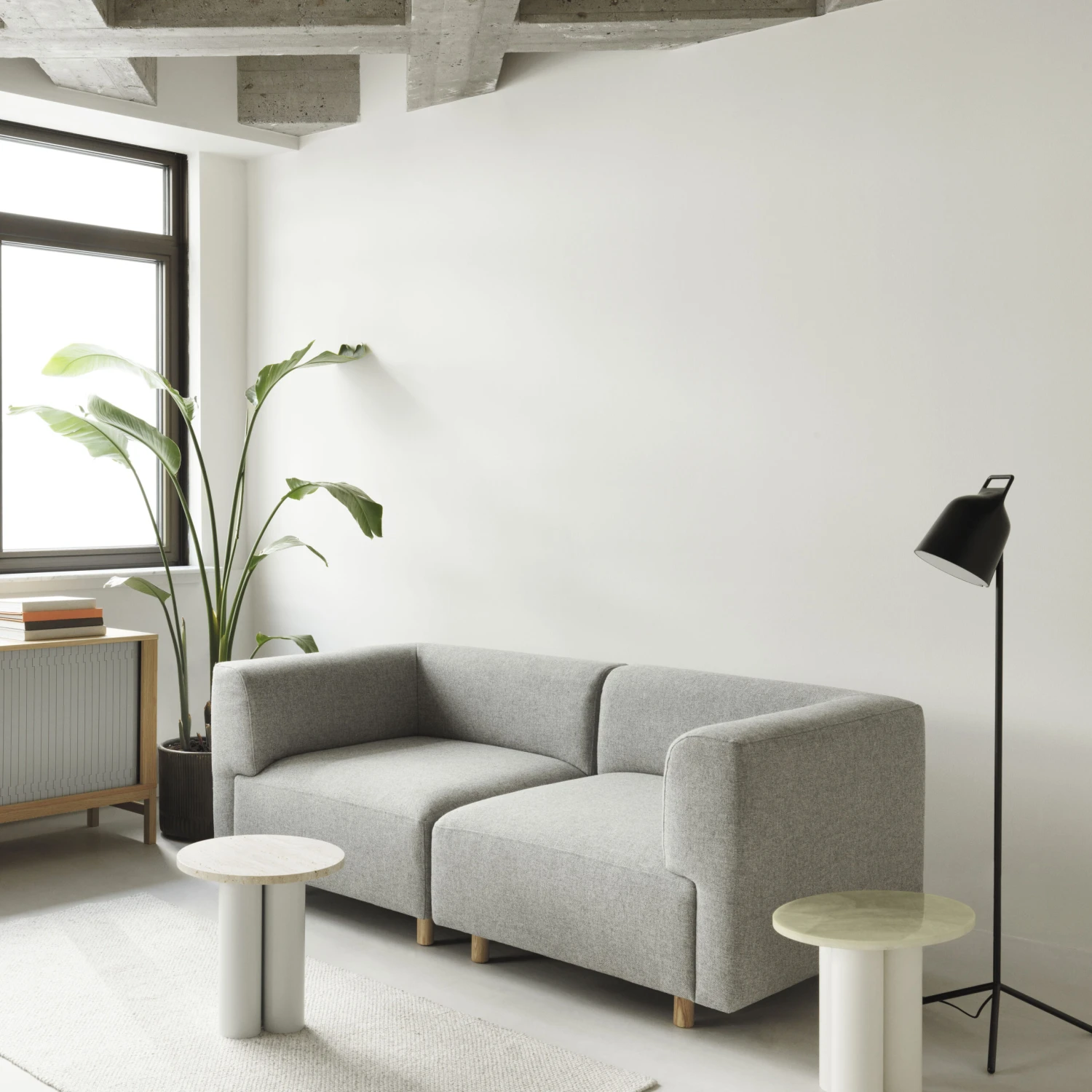 Farbe : Tischplatte: weißer Marmor – Fuß sandfarben