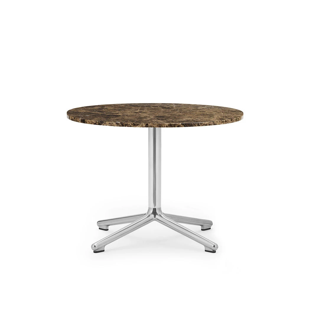 Material : Fußgestell: Aluminiumguss poliert – Tischplatte: kaffefarbener italienischer Marmor