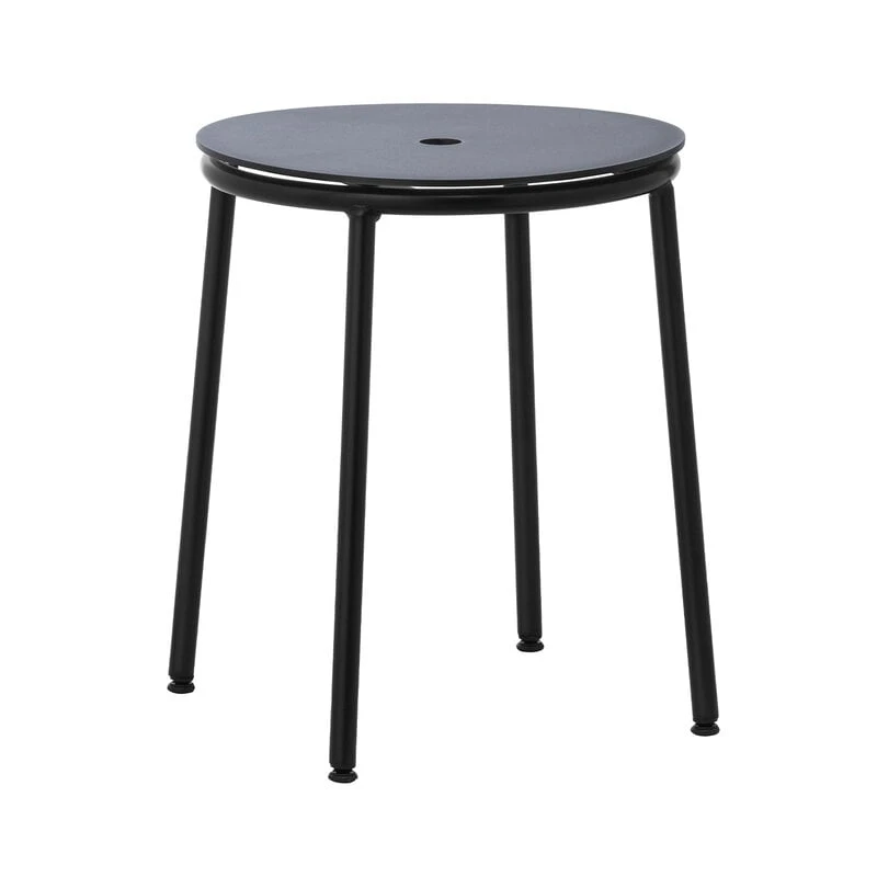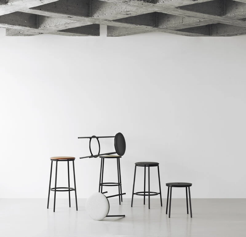Der Circa-Hocker von Normann Copenhagen ist ein minimalistischer und zeitloser Hocker mit einem Rahmen aus schlankem Stahlrohr und einer Sitzfläche aus schwarz lackiertem Aluminium. Der von Simon Legald entworfene Hocker verdankt seinen Namen seinen runden Elementen: die Kreisform wird in der Sitzfläche sowie im Loch in der Mitte der Sitzfläche wiederholt, durch das der Hocker sich leicht von einem Ort zum nächsten tragen lässt. Der klassische und doch zeitgemäße Circa-Hocker passt gut an jede Kücheninsel, an den Esstisch und eignet sich auch als zusätzlicher Stuhl für Gäste.