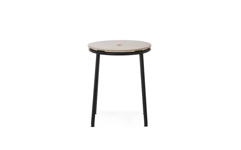 Der Circa-Hocker von Normann Copenhagen ist ein minimalistischer und zeitloser Hocker mit einem Rahmen aus schlankem Stahlrohr und einer Sitzfläche aus lackiertem Eichenfurnier. Der von Simon Legald entworfene Hocker verdankt seinen Namen seinen runden Elementen: die Kreisform wird in der Sitzfläche sowie im Loch in der Mitte der Sitzfläche wiederholt, durch das der Hocker sich leicht von einem Ort zum nächsten tragen lässt. Der klassische und doch zeitgemäße Circa-Hocker passt gut an jede Kücheninsel, an den Esstisch und eignet sich auch als zusätzlicher Stuhl für Gäste.