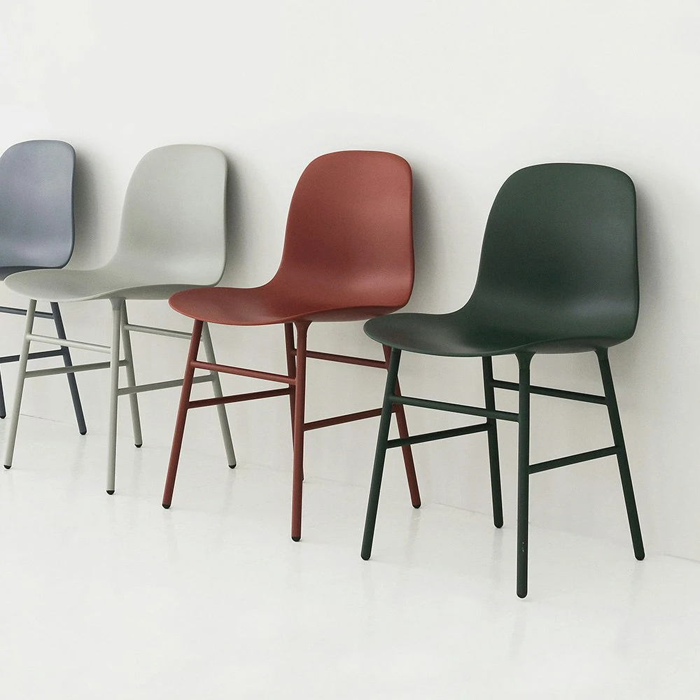 Der Form stuhl hat Beine aus Stahl und einem Sitz aus strapazierfähigem. Mit einem feuchten Tuch reinigen.