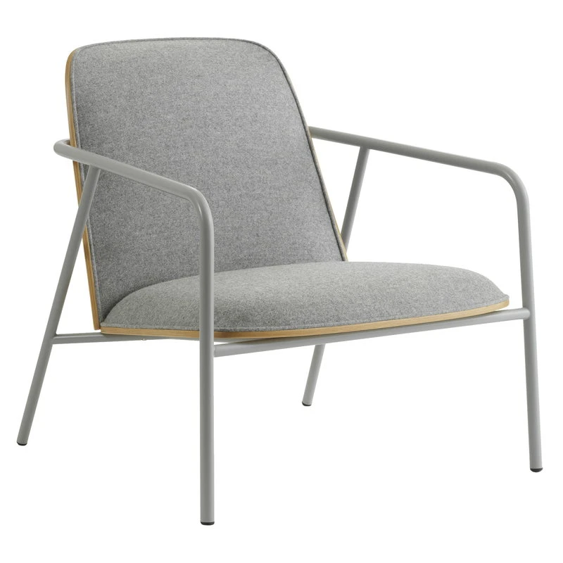 Der Pad-Loungesessel von Normann Copenhagen hat einen raffinierten modernen Look, der durch das sparsame Design und die Kombination verschiedener Materialien entsteht. Das dünne Metallgestell, die aus Eichen- oder Eschenfurnier geformte Schale und der gepolsterte Sitz bilden ein harmonisches Ganzes, und die abgerundeten Ecken verleihen der kastenförmigen Form eine gewisse Weichheit. Der leichte und schlichte Loungesessel bringt die subtile Eleganz des dänischen Designs in Lounges, Wohnzimmer und Lobbybereiche. Der Pad-Loungesessel ist ein Entwurf von Simon Legald.