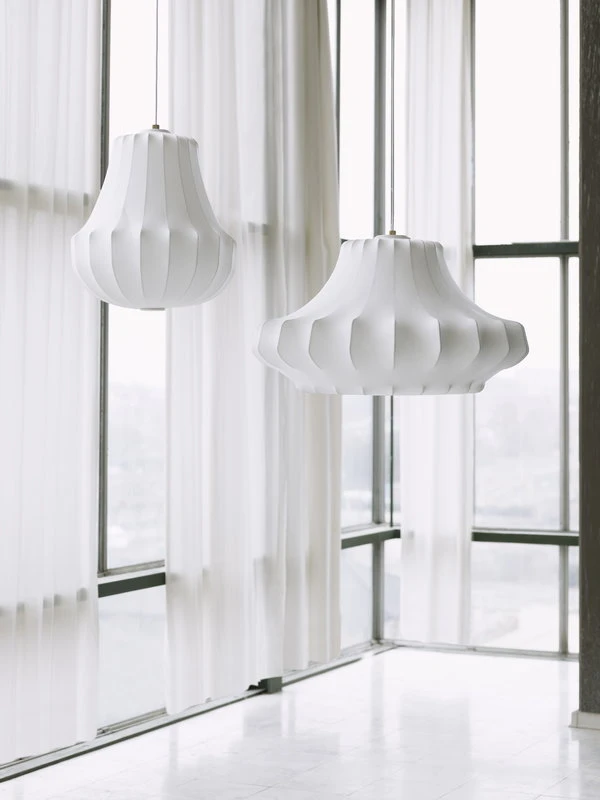 Die Leuchte Phantom von Normann Copenhagen wurde von Simon Legald entworfen und erinnert in ihrer Form an einen traditionellen Kronleuchter. Die dramatische Silhouette der Phantom-Leuchte wird erreicht, indem das Stahlgestell mit einem flammhemmenden Harz besprüht wird, als ob eine Seidenraupe ihren Kokon bildet. Das Licht filtert sanft durch das halbtransparente Material und schafft eine stimmungsvolle Beleuchtung für Ihr Schlafzimmer oder Wohnzimmer.