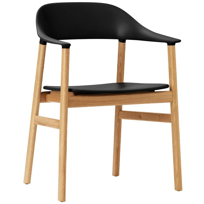 Herit von Normann Copenhagen ist ein markanter, aber dezenter Eichenstuhl mit einer weich geschwungenen Sitzfläche und einer Rückenlehne aus Polypropylen. Die Abkürzung Herit steht für Heritage und spiegelt die Liebe des Designers Simon Legald zum klassischen dänischen Möbeldesign wider. Der zeitlose Stil beherbergt Einflüsse aus vielen verschiedenen dänischen Designepochen. Die modernen Produktionsmethoden und Materialkompositionen machen Herit auch zu einem zukunftsweisenden Stuhl, der neuen Glanz in das skandinavische Design bringt. Dank seines vielseitigen Charakters lässt sich Herit problemlos mit alten, rustikalen Tischen, kühnen Designklassikern sowie modernen Ess- und Restauranttischen kombinieren.