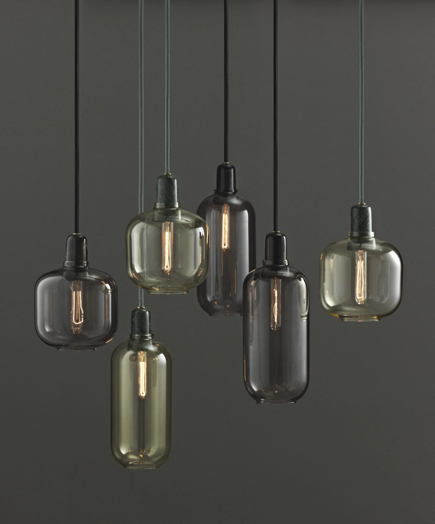 Die Lampenkollektion „Amp“ wurde vom dänischen Designer Simon Legald entworfen. Die Idee zur Form dieser Lampe kam ihm eines Tages, als er ein altes Radio aus den 1960er Jahren reparierte: Das vom Röhrenverstärker ausgestrahlte Licht hat ihn einfach fasziniert. Sowohl die schlichte ovale Form des Lampenschirms als auch der außergewöhnliche Leuchteffekt nehmen ganz direkt Bezug darauf – ebenso wie der Name „Amp“, der die englische Abkürzung für den Röhrenverstärker („tube amplifier“) wieder aufnimmt.