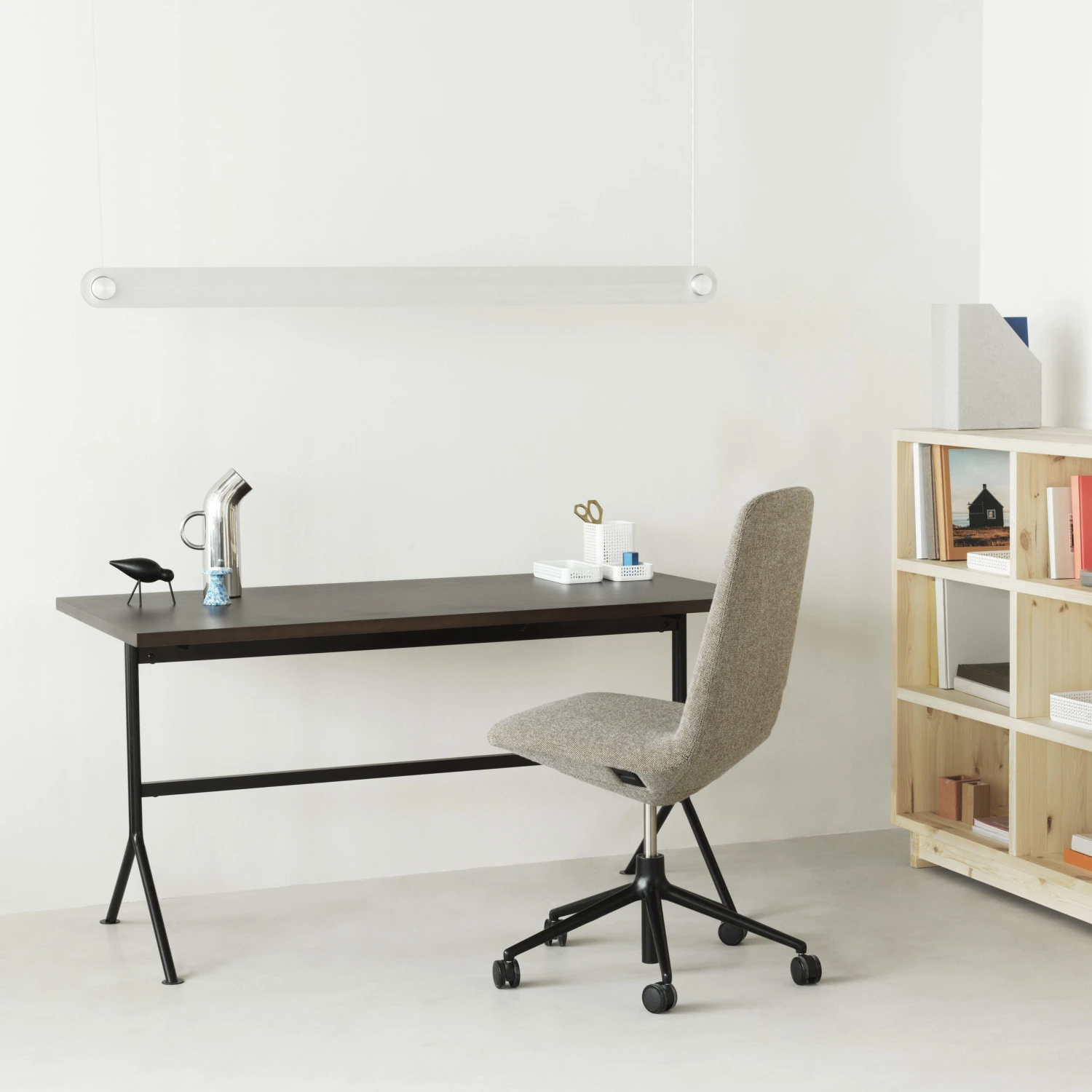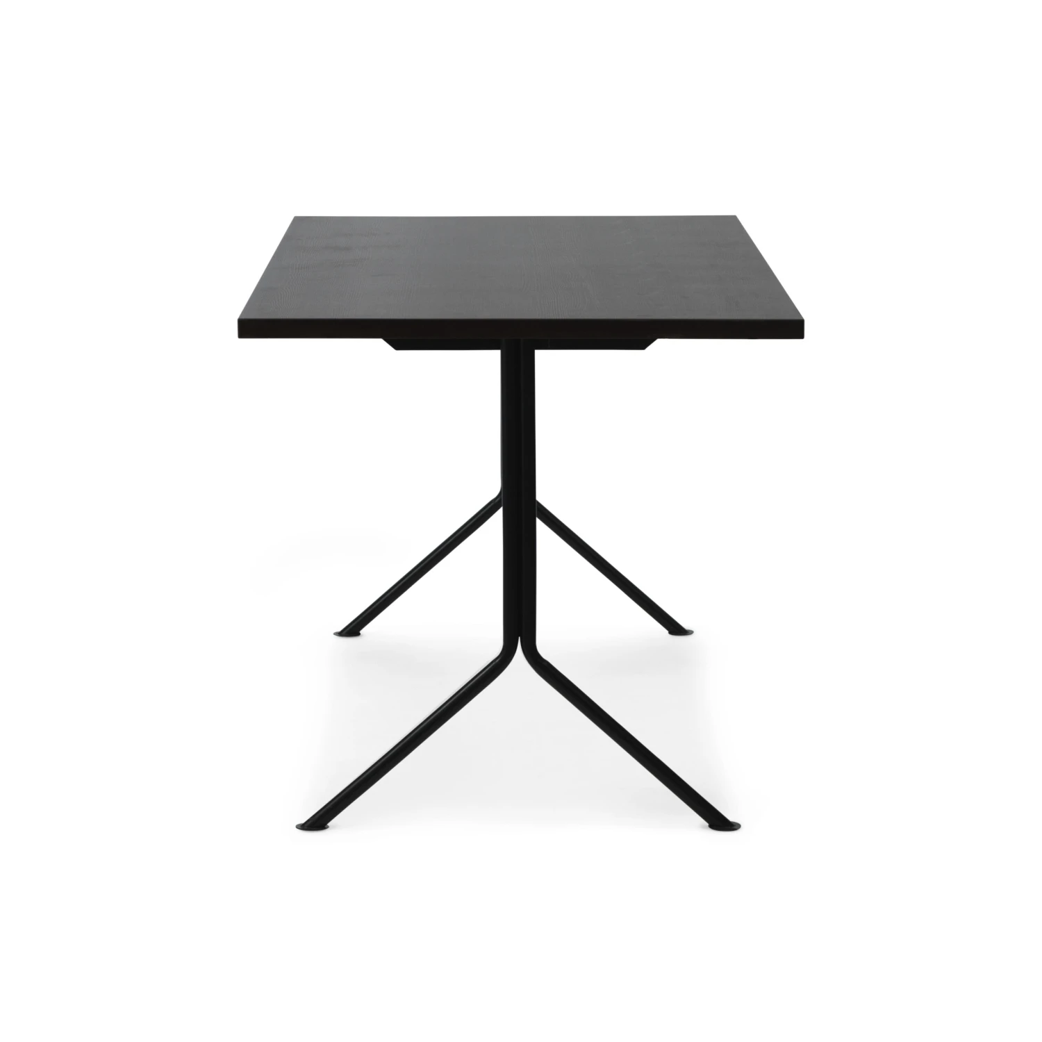 Material : Tischplatte: Kiefer gebeizt, UV-Schutzlack – Fußgestell: Stahl pulverbeschichtet