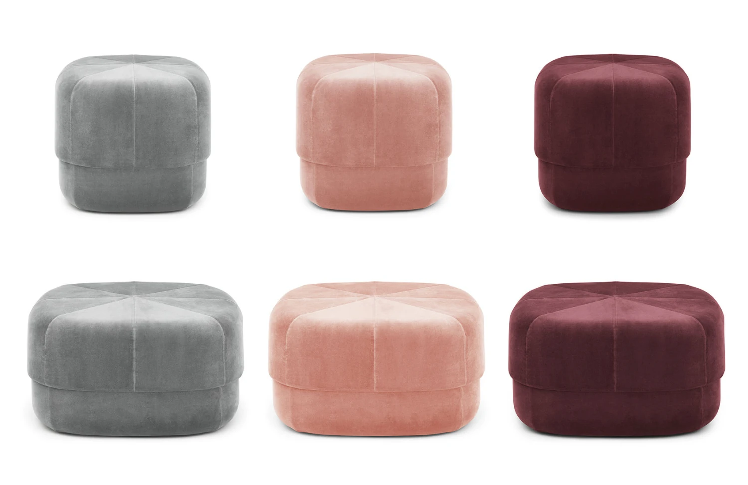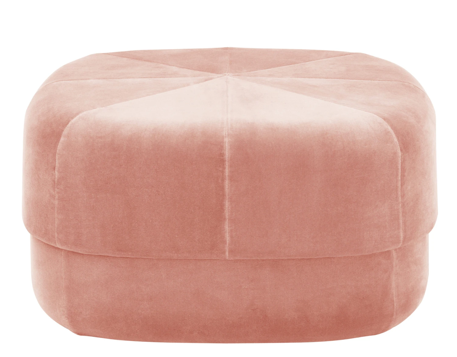Für optimalen Komfort ist der untere Teil des Sitzhockers aus einem festem Schaumstoff gefertigt, während die Sitzfläche mit weicherem Schaumstoff gepolstert ist. Der Sitzhocker ist mit einem robusten Baumwoll-Velours bezogen. Die Verwendung von Holz im Boden des Sitzhockers sorgt für Stabilität.